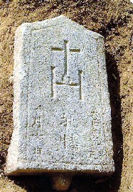 キリシタン墓碑は将棋の駒に似た五角形で、